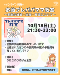11/22(土) 10:00~11:30 『多胎プレパパママ教室〜多胎の妊娠・出産・育児について』
