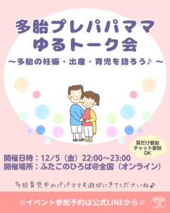 【活動報告】多胎プレパパママゆるトーク会〜多胎の妊娠・出産・育児を語ろう ♪