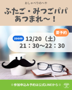 「ふたご・みつごパパ あつまれ〜!」をおしゃべりのへや(Zoom)で開催しました。