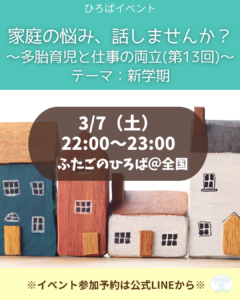 【活動報告】家庭の悩み、話しませんか? ~多胎育児と仕事の両立(第13回)~